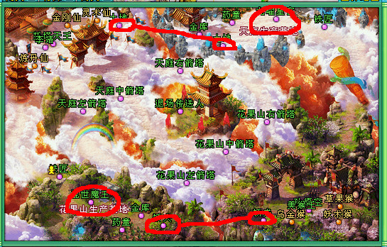 先说最简单的后勤任务类,这个任务难度不大,积分也不高,通常是人员不完整或整体实力较弱的队伍的刷分途径,天庭和花果山分别由土地和轿夫传送到本方生产基地,然后在九曜星官和混世魔王处领取任务。
