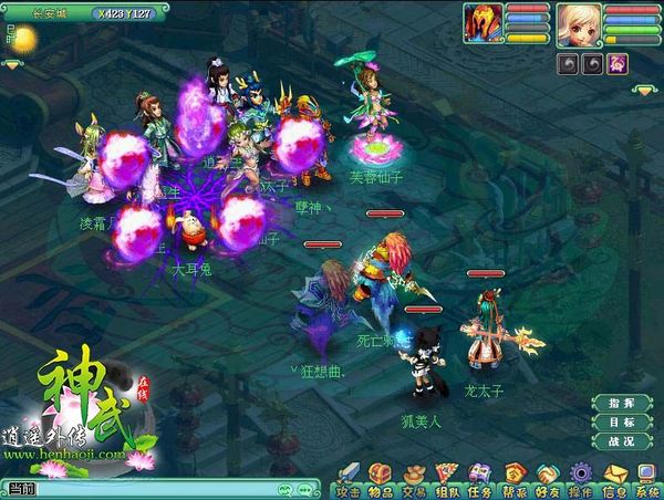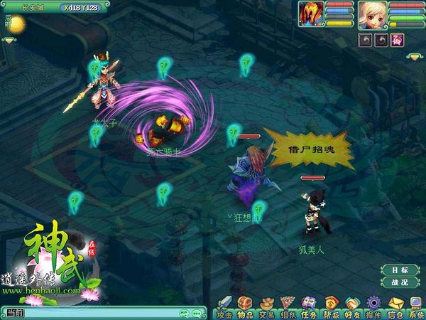 作为一个专业的地府,团P开始的时候,第一回合必须用“黑暗光环”,吸引一个伤害(如果没血也不怕,第2回合用“死亡契约”吃个宝宝),第2回合笔者建议用“死亡缠绕”,好让敌方防御一下,打乱一下敌方的攻击节奏,最后“尸腐毒”、“判官令”、“魂飞魄散”任意用一下,中毒、耗蓝,还有几率禁止复活,见到有敌方有什么好的状态就抢过来。最重要的一点是,以上我们所做的一切施法,都与敌方法抗的高低、有无有进行防御操作毫无关系,想躲都躲不了。不管你爽不爽,反正我很爽。