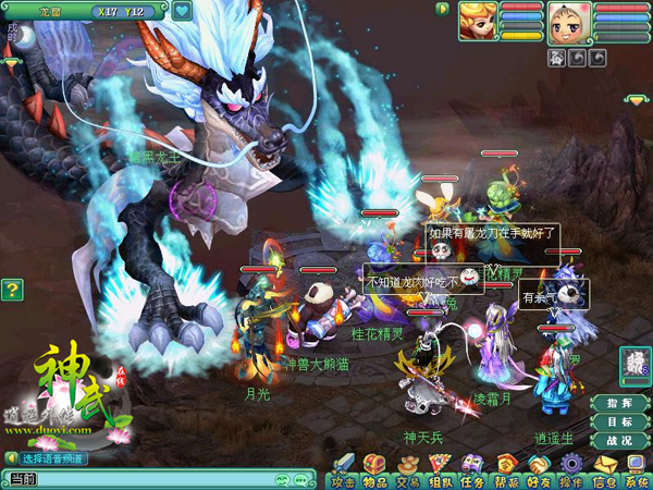 “暗黑龙王”是《神武》首个巨型BOSS挑战活动,需要全服务器玩家共同努力才能将暗黑龙王击杀,每当活动开始时,都会出现万人共同挑战同一BOSS的盛况。同时,暗黑龙王采用了全新的美术资源,霸气的外表看上去相当有威慑力。除此之外,小编在体验活动后发现与暗黑龙王的战斗并不容易,对策略有相当高的要求,并不是简单的你打一下我打一下,这点也符合了《神武》强调策略战斗的一贯作风。